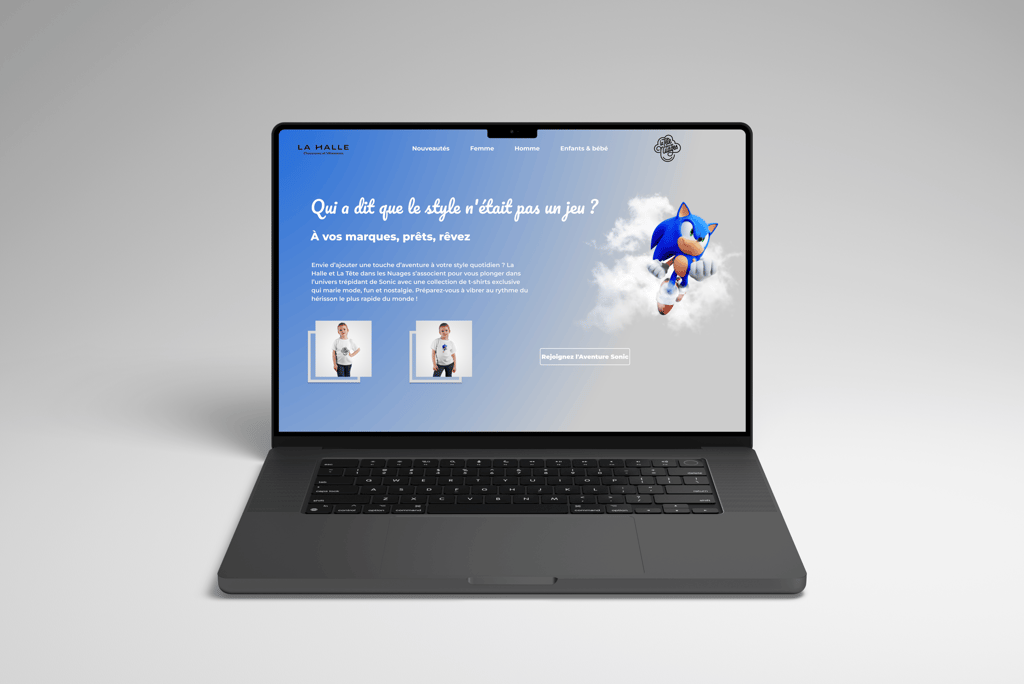 Dans le cadre d’un module en stratégie d’Inbound Marketing, j’ai travaillé sur la dynamisation de la présence digitale de La Halle aux vêtements. J’ai imaginé une collaboration entre La Halle aux vêtements X La Tête dans les Nuages, visant à toucher un public de pères et leurs enfants. J’ai conçu des landing pages ainsi qu’une vidéo de présentation destinée à mon jury d’examen.
